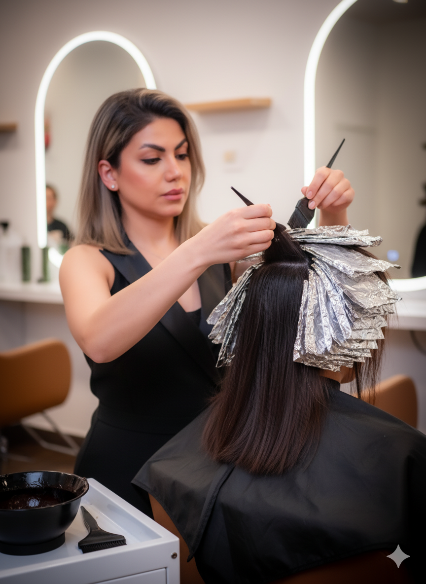 A combined root-color and full-foil highlighting service that brightens the hair, adds multi-dimensional tone, and seamlessly blends regrowth.