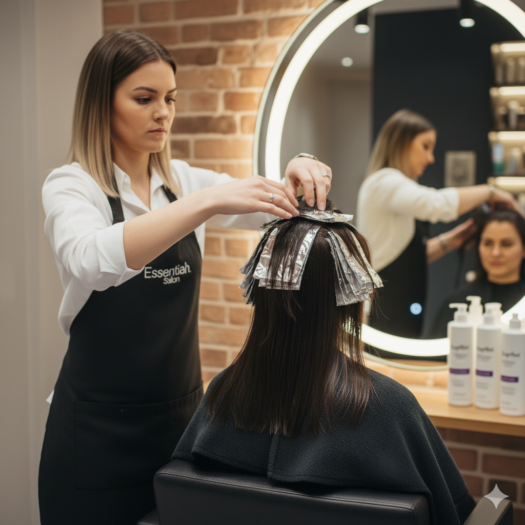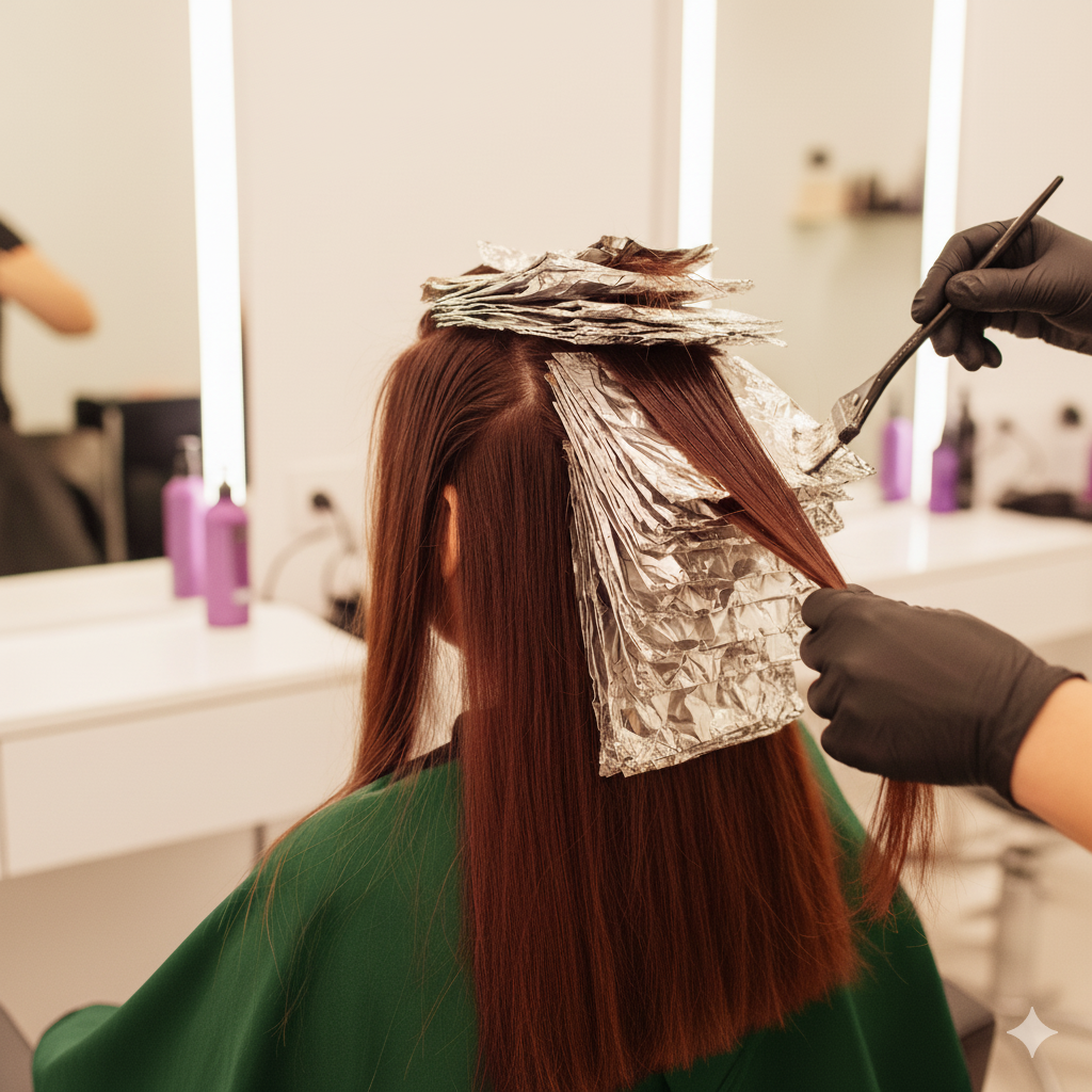 Foils are applied to the top and sides of the head to add brightness and dimension. This service focuses on the crown and front sections, leaving the underneath untouched.