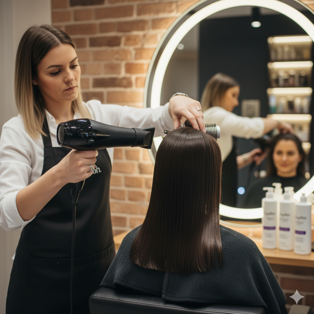 Wash and blow-dry for a smooth, polished finish. Style tailored to your preference.